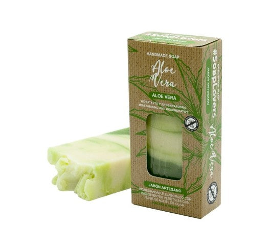 Jabón de aloe vera en pastilla en formato de 100 gramos.