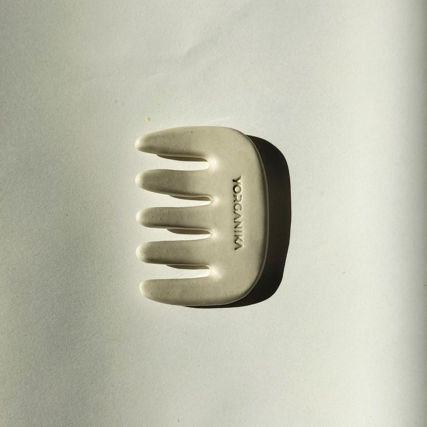 Scalp Gua Sha de cerámica elaborada de manera artesanal. Cada pieza es creada individualmente a mano con materiales no tóxicos y de alta calidad, para masajear la cabeza y mejorar la salud del cuero cabelludo y el cabello.